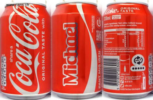 330ml Energi 594 7 139 cal Fedt Og 0% Mattede ettsyrer Or Salterarter 35g Salt 38 39 0% 100ml: 10/42kcal share a ORIGINAL TASTE with Periode: 15/05-31/08 2025 Coke.dk/shareacoke C Coke 330ml ORIGINAL Ⓡ TASTE Serveres afkølet Laskedrik. Ingredienser: Vand, sukker, kuldioxid, farvestof 150d), syre (E338), naturlige aromaer, aroma koffein. NÆRINGSINDHOLD 100ml 330ml (%*) PER: 180kJ/42kcal 594kJ/139kcal (7%) Energi Fedt Og Og (0%) heraf mættede fedtsyrer: Og Og (0%) Kulhydrat 10.6g 35g (13%) heraf sukkerarter: 10.6g 35g (39%) SCAN MIG G Protein: Og Og (0%) OG VINDICE Salt Og Og (0%) PANT MIG IGEN JEG ER IKKE AFF EG SKAL GENANVENDES Referenceindtag for en voksen gennemsnitsperson (8400kJ/2000kcal). Opbevares tørt og ikke over normal stuetemperatur. Bedst før: Se dåsens bund. 5 701872 203005 coke.com 330ml Energi Pant A 5940 139cal Fedt Og Mattede fedtsyrer Ball Sukkerarter 35g Carlsberg Danmark A/S, DK-1799 København V 33 27 33 77 coke.com 52025 The Coca-Cola Company 16D51AF28C 339962 Og 100m 180kJ