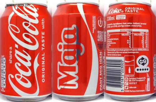 594 77 139cal edtsyrer 0% Og Salterarter 35g 39 100ml: 2kcal share a ORIGINAL TASTE with Periode: 15/05-31/08 2025 Coke.dk/shareacoke อ Coke 330ml Serveres afkølet ORIGINAL TASTE Læskedrik. Ingredienser: Vand, sukker, kuldioxid, farvestof E150d), syre (E338), naturlige aromaer, aroma koffein. NÆRINGSINDHOLD 100ml PER: 330ml (2) 180kJ/42kcal Energi 594kJ/139kcal (72) Fedt: Og Og (0%) heraf mættede fedtsyrer: Og Og (0%) Kulhydrat: 10.6g 35g (13%) heraf sukkerarter: 10.6g 35g (39%) SCAN MIG MIG Protein: Og Og (0%) OG VIND FEDE PREMIER Salt: Og Og (0%) EG SKAL GENANVENDES PANT MIG IGEN JEG ER I Bedst før: Se dåsens bund. Referenceindtag for en voksen gennemsnitsperson (8400kJ/2000kcal). Opbevares tørt og ikke over normal stuetemperatur. 5 701872 203005 coke.com Pant A Carlsberg Danmark A/S, DK-1799 København V 33 27 33 77 coke.com S2025 The Coca-Cola Company Ball 16D51AFOBA 339962 fedtsy Sutterte 350 3= Ener 594 139 Feat