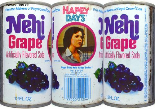 From the Makers of Royal Crown Cola Nehi Grape ad Artificially Flavored Soda 12 FL.OZ. 1978 PPC Crown Cola 1978 PPC HAPPY DAY'S Ⓡ Happy Days Nehi Grape Series 1 No. 6 of 35. PACKED BY NEHI BEVERAGE CO., INC., INDIANAPOLIS, INDIANA 46202 29500 21254 From the Mathe Makers of Royal Crown Cola Nehi Grape Attificially Flavored Soda 128 12FL.OZ. FLAVOR AND COLOR, SODIUM BENZOATE (A PRESERVATIVE), AND NATURAL FLAVOR.