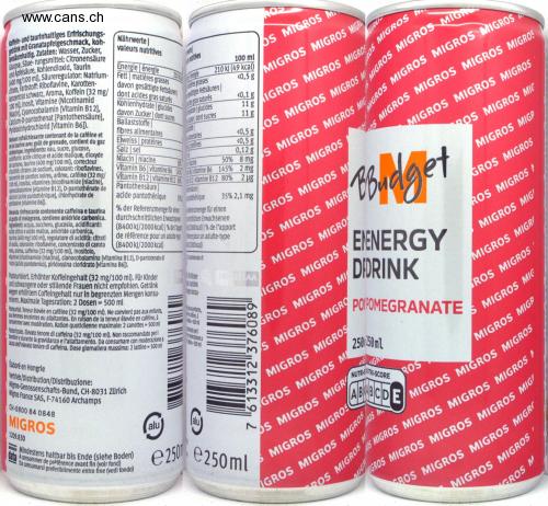 Koffein-und taurinhaltiges Erfrischungs- getränk mit Granatapfelgeschmack, koh- lensäurehaltig. Zutaten: Wasser, Zucker, Glucose, Säue-rungsmittel: Citronensäure und Apfelsäure, Kohlendioxid, Taurin Energie énergie (400 mg/100 ml), Säureregulator: Natrium- Fett | matières grasses davon gesättigte Fettsäuren ditrate, Farbstoff: Riboflavine, Karotten- konzentrat schwarz, Aroma, Koffein (32 mg/ dont acides gras saturés 100 ml), Inosit, Vitamine (Nicotinamid Niacin), Cyanocobalamin (Vitamin B12), Calcium-D-pantothenat [Pantothensäure), Pyridoxinhydrochlorid [Vitamin B6]). Kohlenhydrate glucides davon Zucker| dont sucres Ballaststoffe Nährwerte valeurs nutritives Bevanda rinfrescante contenente caffeina e taurina al gusto di melagrana, contiene anidride carbonica. Ingredienti: acqua, zucchero, glucosio, acidificanti: adido citrico e acido malico, anidride carbonica, taurina (400 mg/100 ml), regolatore di acidità: citrati di sodio, colorante: riboflavine, concentrato di carota nera, aroma, caffeina (32 mg/100 ml), inositolo, vitamine (nicotinamide [niacina), cianocobalamina (vitamina B12), D-pantotenato di raldo (acido pantotenico), piridossina cloridrato [(vitamina B6]). Pasteurisiert. Erhöhter Koffeingehalt (32 mg/100 ml). Für Kinder und schwangere oder stillende Frauen nicht empfohlen. Getränk wegen erhöhtem Coffeingehalt nur in begrenzten Mengen konsu- mieren. Maximale Tagesration: 2 Dosen = 500 ml Pasteurisé. Teneur élevée en caféine (32 mg/100 ml). Ne convient pas aux enfants, aux femmes enceintes ou allaitantes. En raison de la teneur élevée en caféine, à consommer avec modération. Ration quotidienne maximale: 2 canettes = 500 ml Pastorizzato. Elevato tenore di caffeina (32 mg/100 ml). Non raccomandato per l bambini e durante la gravidanza e l'allattamento. Da consumare con moderazione a causa dell'elevato tenore di caffeina. Dose giornaliera massima: 2 lattine - 500 ml Elaboré en Hongrie Vertrieb/Distribution/Distribuzione: Migros-Genossenschafts-Bund, CH-8031 Zürich Migros France SAS, F-74160 Archamps CH-0800 84 0848 MIGROS 1209.830 MGROS Mindestens haltbar bis Ende (siehe Boden) A consommer de préférence avant fin (voir fond) Da consumarsi preferibilmente entro fine (vedi fondo) data tritives alu <0,5 g fibres alimentaires Eiweiss protéines Salz sel Boisson rafraichissante contenant de la caféine et de la taurine avec goût de grenade, contient du gaz carbonique. Ingrédients: eau, sucre, glucose, addifiants: acide citrique et acide malique, dioxyde <0,5 g 0,12 g Niacin | niacine 50% 8 mg 50% lacine Vitamin B6 vitamine B6 145% vitamine B6 145% 2 mg concentré de carottes noires, arôme, caféine (32 mg/ Vitamin B12 vitamine B12 80 812 vitamine B12 80% 2 µg de carbone, taurine (400 mg/100 ml), correcteur adidité: citrates de sodium, colorant: riboflavines, Pantothensäure sure 100 m), inositol, vitamines (nicotinamide [niacine], ganocobalamine (vitamine B12), D-pantothénate de caldum (acide pantothénique), chlorhydrate de pridadine (Vitamine B6). acide pantothénique nique % der Referenzmenge für einen renmenge für einen durchschnittlichen Erwachsenentlichen Erwachsenen (8400 kJ/2000 kcal) % de l'appor (2000 kcal) | % de l'apport de référence pour un adulte-type ce pour un adulte-type (8400 kJ/2000 kcal) 2000 kcal) antenato di Tergle eres grasses ettigte Fettsäuren | des gras saturés drate glucides der dont sucres fe mentaires protéines Kinder konsu enfants, fène, à 500 ml 100 ml 210 kJ (49 kcal) <0,5 g per derazione a os MIGROS M MIGROS MIGROS MIGRO faluj <0,1 g 11 g 11 g 35% 2,1 mg 271AA 7 613312"376089 e25 250ml MIGROS MIGROS MIGH MIGROS MIGROS MIGROS MIGROS OS MIGROS MIGROS MIGROS MIGROS IGROS MIGROS MIGROS MIGROS M OS MIGROS MIGROS M S MIGROS MIGROS MIG MIGROS MIGROS Budget GROS MIGROS M OS MIGROS MIGR ENENERGY DIDRINK POIPOMEGRANATE 5 MIGROS MIGRO IGROS MIGROS M GROS MIGROS MI ROS MIGRO GRO 250150ml AIG GR NUTRISIRI-SCORE MIGROS MIGROS GROS MIGROS M OS MIGROS MIGR OS MIGROS GROS MIGROS MIGROS M MIGROS MIGROS MIGROS ROS MIGROS MIG MIGH POS MIGROS ROS MIGROS MIGR GROS MIGROS ABOCDE MIGROS MIGROS MIGROS GROS N ROS MIGROS ! MIGROS MIG! MIGROS MIGR ROS MIGROS MIGROS MIC MIGROS MIGR HOS MIGROS MIGROS MIGROS MIGROS MIGROS MIGROS MIGROS MIGROS MIG ROS MIGROS MIGROS MIGR MIGROS MIGROS GROS M