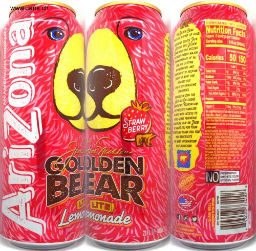 AN AMERICAN COMPANY ** 曲 3 NAN Tack STRAW BERRY Jichoklons GOLDLDEN BEEAR LITE Lemmonade C www FOR HAS 23 FL. OZ-680mLⒸ THE GOLDEN BEAR UL HAS A HEART OF GOLD LEGENDARY GOLFER GOLDEN NICKLAUS (THE BEAR HOLDS THE RECORD FOR MOST CAREER MAJOR CHAMPIONSHIPS OF ALL TIME HIS LIFETIME ACHIEVEMENTS AND COMMITMENT TO HELPING OTHERS IS WHAT HAS INSPIRED OUR UNE OF LIP-SMACKING LEMONADES FOUNDED IN 2004 THE ICKLAUS CHILDREN'S HEALTHCARE FOUNDATION HAS PROVIDED FAMILIES HEIN-NEED WITH ACCESS TO WORLD-CLASS PEDIATRIC HEAD HEALTHCARE PLAY ON JACK WE SAU EFFORTS WE SALUTE YOU FOR YOUR EFFORTS AND THANK YOU FOR YOUR GENEROSITY FOR FOR MORE INFORMATION VISIT NCHCF.ORG To JACK VI ANTIOX FORTIFIED FAMILY AN AMERICAN COMPANY CONTAINS 10% JUICE Nutrition Facts Approx. 3 servings per container Serving size 8 fl oz (240mL) Per serving Per container Calories 50 150 %DV* Total Fat 0g 0% 0g 0% Sodium 15mg 1% 45mg 2% Total Carb. 13g 5% 38g 14% Total Sugars 12g 35g Incl. Added Sugars 11g 22% 31g 62% Protein Og Og Vitamin C 13mg 15% 37mg 40% Not a significant source of saturated fat, trans fat, cholesterol, dietary fiber, vitamin D, calcium, iron and potassium. *The % Daily Value (DV) tells you how much a nutrient in a serving of food contributes to a daily diet. 2,000 calories a day is used for general nutrition advice. OWNED & OPERATE fo drinkarizona.com nicklaus.com info about ArtiZona call 1 800 832 3775 INGREDIENTS: FILTERED WATER, HIGH FRUCTOSE CORN SYRUP (GLUCOSE-FRUCTOSE SYRUP), LEMON JUICE FROM CONCENTRATE PEAR JUICE FROM CONCENTRATE, HONEY, CITRIC ACID, FRUIT AND VEGETABLE JUICE FOR COLOR, PECTIN, SODIUM CITRATE, NATURAL FLAVORING, GUM ACACIA, ASCORBIC ACID (VITAMIN C), SUCRALOSE, ESTER GUM. MFD. FOR ARIZONA BEVERAGES USA LLC WOODBURY, NY 11797 USA LICENSED UNDER THE AUTHORITY OF NICKLAUS BRANDS LLC 2021 BEVERAGE MARKETING USA, INC. NO 59736 SHAKE WELL REFRIGERATE AFTER OPENING 3013694K21 PRESERVATIVES SYNTHETIC COLOR ARTIFICIAL FLAVOR 00722800EL COD02DA10B