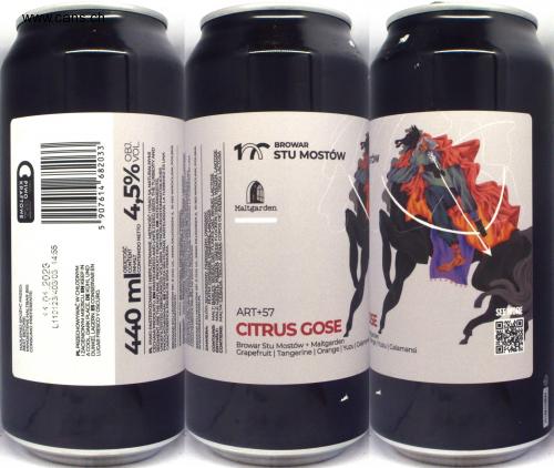 R1BH19BN NAJLEPIEJ SPOŻYĆ PRZED: BEST BEFORE: MINDESTENS HALTBAR BIS: CONSUMO PREFERENTE: PL PRZECHOWYWAĆ W CHŁODNYM IZACIENIONYM MIEJSCU. EN KEEP IN A COOL, DARK PLACE. DE KÜHL UND DUNKEL LAGERN. ES CONSERVAR EN LUGAR FRESCO Y OSCURO. 14.01.2023 L110123/403/03 14:55 OBJĘTOŚĆ CONTENT INHALT CONTENIDO NETTO 440 mlNETTO 4,5% PL PIWO PASTERYZOWANE I NIEFILTROWANE. MĘTNOŚĆI OSAD SĄ NATURALNYMI CECHAMI PRODUKTU. EN PASTEURIZED AND UNFILTERED BEER. THE TURBIDITY AND SEDIMENT ARE THE NATURAL PRODUCT FEATURES. DE ASTEURISIERTES, UNGEFILTERTES OBERGARIGES VOLLBIER. DIETRUBUNGISTEINNATÜRLICHES PRODUKTMERKMAL ES CERVEZA SIN FILTRAR, PASTEURIZAR. LA TURBIDEZ ES UNA CARACTERÍSTICA PROPIA DE ESTA CERVEZA SETHMENTARES THE MO BROWAR STU MOSTÓW SP. Z O.O. UL. JANA DŁUGOSZA 2, 51-162 WROCŁAW, POLSKA www.00MOSTOW.PL SLOD: 25STA UNGEFILTERESOBERC PRODUKTMERKMAL ENG CARACTERISTICA PROPIA DE ESTA CERVEZA Grapefruit | Tangerine | Orange/Yuzu/Calamars 3MOldvaх OMED CHAR 5907614" 682033 ge Yuzu | Calamansi ART+57 Browar Stu Mostów + Maltgarden CITRUS GOSE BROWAR STU MOSTÓW SP. Z O.O. UL. JANA DŁUGOSZA 2, 51-162 WROCŁAW, POLSKA www.100MOSTOW.PL SONORA ZAWIERA: SŁOD: JĘCZMIENNY, PSZENICZNY, OWSIANY: PLATKI: OWSIANE, PSZENNE, LAKTOZA CONTAINS: MALT: BARLEY, WHEAT, OAT; FLAKES: OAT, WHEAT, LACTOSE ENTHÄLT: MALZ: GERSTE. WEIZEN, HAFER; FLOCKEN: HAFER, WEIZEN, LAKTOSE CONTIENE: MALTA: CEBADA. TRIGO, AVENA: COPOS DE: AVENA, TRIGO, LACTOSA OBJ. VOL. INFRAS EURIZAR LA TURBIDEZ ES UNA CHE Maltgarden STU MOSTÓW STOW
