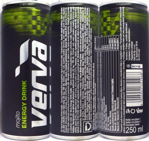 mojito ENERGY DRINK verva Verva Energy Drink mojito-Sycený nealkoholický energetický nápoj s příchutí mojito. Pasterizovaný. Vysoký obsah kofeinu. Není vhodné pro děti a těhotné nebo kojící ženy (32 mg / 100 ml). Složení: voda, cukr, kyselina: kyselina citronová, oxid uhličitý, taurin (0,4%), regulátor kyselosti: citronany sodné, aromata, kofein (0,032%), vitamíny: niacin, kyselina pantothenová, vitamín B6, vitamín B12, barviva: E102, E133. E102: může nepříznivě ovlivňovat činnost a pozomost dětí. Minimální trvanlivost do: datum a číslo šarže na dně plechovky. Skladujte na suchém a chladném místě. SK Verva Energy Drink mojito - Sýtený nealkoholický energetický nápoj s príchuťou mojito. Pasterizovaný. Vysoký obsah kofeínu. Neodporúča sa deťom ani tehotným a dojčiacim ženám (32 mg / 100 ml). Zloženie: voda, cukor, kyselina: kyselina citrónová; oxid uhličitý, taurín (0,4%), regulátor kyslosti: citrát sodný; arómy, kofeín (0,032%), vitamíny: niacín, kyselina pantoténová, vitamín B6, vitamín B12; farbivá: E102, E133. E102: môže mať nepriaznivé účinky na činnosť a pozorosť detí. Minimálna trvanlivosť do: dátum a číslo šarže je na spodnej strane plechovky. Skladujte na suchom a chladnom mieste. Verva Mojito Energy Drink-mochito skonio gazuotas gaivusis energinis gėrimas su taurinu, kofeinu ir vitaminais. Pasterizuotas. Sudėtyje daug kofeino. Nerekomenduojama vaikams, nėščiosioms ar žindančioms moterims (32 mg/100 ml). Sudedamosios dalys: vanduo, cukrus, rūgštis: citrinų rūgštis; anglies dioksidas, taurinas (0,4%), rūgštingumą reguliuojanti medžiaga: natrio citratas; kvapiosios medžiagos, kofeinas (0,032%), vitaminai: niacinas, pantoteno rūgštis, vitaminas B6, vitaminas B12; dažikliai: E102, E133. Dažiklis E 102: gali neigiamai paveikti vaikų aktyvumą ir dėmesį. Geriausias iki: data ir partijos numeris nurodytas pakuotės apačioje. Laikyti sausoje ir šaltoje vietoje. D Výživové údaje ve 100 ml/Výživové údaje v 100 ml/Maistingumo deklaracija 100 ml: Energetická hodnota/Energetická hodnota/Energinė vertė Tuky/Tuky / Riebalai z toho nasycené mastné kyseliny/z toho nasýtené mastné kyseliny / iš kurių sočiųjų riebalų rūgščių Sacharidy/Sacharidy / Angliavandenial Energeticka nbaño de Tuky/Tuky/Riebalai z toho nasycené mastné kyseliny/z toho nasýtené mastné kyseliny / iš kurių sočiųjų riebalų rūgščių Sacharidy /Sacharidy/Angliavandeniai z toho cukry/z toho cukry / iš kurių cukrų Bilkoviny/Bielkoviny/Baltymai Sul/Sol/Druska Niacin/Niacín/Niacinas Kyselina pantothenová /Kyselina pantoténová /Pantoteno rūgštis Vitamin B6/Vitamín B6/Vitaminas B6 Vitamin B12/Vitamín B12/Vitaminas B12 250 ml Grynasis kiekis: *Procentní podíl denních referenčních hodnot příjmu vitamínů a minerálních látek (u dospělých osob) / Percentuálny podiel denných referenčných príjmov vitamínov a minerálnych látok (dospelí) / Referencinis vitaminų ir mineralinių medžiagų vartojimo kiekis per parą (suaugusiems asmenims). Netto množstvo: / Netto množství: / Overve 5 904941 751968"> 198 kJ/47 kcal og 09 10.9 a CP B4CH19B Og 10,9.9. 10,9 g 0,35 g 0,12 g. 7,0 mg (44%*) 2,0 mg (33%) 0,7 mg (50%*) 0,5 µg (20%*) Vyrobeno v Polsku, vyrobila společnost / Vyrobené v Poľsku spoločnosťou / Pagaminta Lenkijoje Eko-Vit Sp. z o.o. ul. Techniczna 16/18 92-518 Łódź
