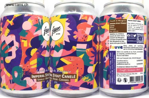 CRAFT BIERE Canele de ele de 1 IMPERIAL STOURIAL STOUT CANELÉ VANILLE RHUM 12% CANILLE RHUM CARAMEL 12% Canelé de Mauguia FAUVE CRAFT BIÈRE IMPERIAL STOUT CANELÉ Des bières artisanales qui Vanille Rhum Caramel Alc. 12% vol. Réédition du 200ème ont du goût et un univers coloré on partage avec vous notre passion pour la bière craft! brassin de notre micro-O brasserie de Mauguio: une base d'imperial stout bien décadente et des ajouts ultra gourmands! fauve Ingrédients : eau, malts d'orge, de seigle, d'avoine et de blé, vanille, houblon, levure, rhum, arôme caramel. Contient du gluten. @fauvebiere fauvebiere.com f Flow, 2023, art numérique. Illustration réalisée avec le sourire par le chimérique Léo Alexandre! Bière à la vanille et au rhum, aromatisée au caramel, conditionnée par Fauve Craft Bière 154 rue François Coli, 34130 Mauguio Conditionnée le : À consommer de préférence avant le: 11/05/2023 11/05/2025 À conserver debout et au frais ! Craft. Science. Art Beer/Cerveza/Cerveja/Bier/01/ Öl/Olut/Pivo/Birra 33 cl 3 760380 250330