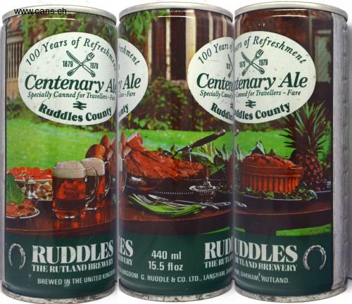 100 Years of Refreshment 1879 1979 eshment Centenary Al Ale Specially Canned for Travellers-Fa Ruddles County rs-Fare unty 100 Years rs of 1878 1879 of Refreshment 1979 Cententenary Ale Specially Canned Canned for Travellers - Fare Ruddle E= ddles County C RUDDLES ES THE RUTLAND BREWERY BREWED IN THE UNITED KINGDON EWERY 440 ml 15.5 floz RUDUDDLES THE RUTLAN D KINGDOM G. RUDDLE & CO. LTD., LANGHAM, O DAKH RUTLAND BREWERY AM, DAKHAM RUTLAND.