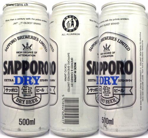 More than a century with the polaris emblem JAPAN JAPAN'S OLDEST BRAND Imported by RIVALAGE LIMITED 11 LONSDALE ROAD LONDON NW6 6RA ALCOHOL CONTENT 5.0% VOL. BEST BEFORE-SEE END. SAPPORO O DEWERIES LIMITED HG HIGH DEGREE OF AATTENUATION SAPPORO EXTRA IDRY エクストラドライ サッポロ生ビール 非熟处理 RY BEER 500ml More than a century with the polaris emblem JAP SOLDEST BRAND SAPPORO BREWERIES R HIGH DEGREE OF ATTENUATION emblem LIMITED MITED SAPPOROD EXTRA DRY エクストラドライ リストラドライ サッポロ生ビール 非热处理 DRY BEER 500ml 11 あ lat ZI に ず D' ALL ALUMINIUM MADE IN JAPAN SAPPORO BREWERIES LIMITED BREWED & CANNED BY TOKYO JAPAN 5 018944 625611