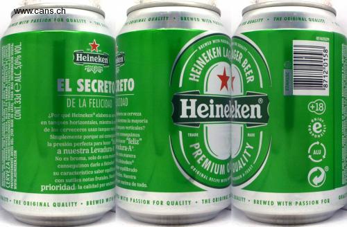 WEWED WITH PASSION FOR QUALITY THE ON THE ORIGINAL QUALITY BREWED WITH PASSIN FOR QUALITY. BREWED WITH PASSION FOR QUALITY- LAGAGER HEINEKEN BEER THE ORIGINAL QUALITY E7AH15C 051625379 8712 0158' Heinekeken (R HEINEKEN BROUWERIJEN 1. SEVILLA. INGREDIENTES: AGUA, MALTA DE CEBADA, EXTRACTO DE LUPULO. CONT. 33d eALC. 5,0% VOL. HOLLAND AND CANNED UNDER LICENE SPANA, S.A. AVDA. DE ANDA.AMSTERDAM, CERVEZA VALORES NUTRICIONALES POR 100ml: ENERGIA 176 kJ/42 kcal. CONSUMIR PREFERENTEMENTE ANTES DEL: (VER BASE DE LATA). PARA MÁS INFORMACIÓN VISITA: www.HEINEKEN.COM EST. Heinekenken EL SECRETO RETO DE LA FELICIDAD DICIDAD ¿Por qué Heineken elabora su cerve elabora su cerveza en tanques horizontales, mientras la mientras la mayoría de los cerveceros usan tanques verticanques verticales? Simplemente porque así conseguirsi conseguimos la presión perfecta para hacer "fea hacer "feliz" a nuestra Levadura adura-A de No es broma, solo de esta manera esta manera conseguimos darle a Heineken ea Heineken su característico sabor equilibra equilibrado con sutiles notas frutales. Nuestes. Nuestra prioridad: la calidad por encimer encima de todo. TRADE . ALITY THE ORIGINAL QUALITY BREWED WITH WITH PASSION FOR QUALITY +18 ENJOY e MARK SPONS ALU MALTA DE CERADA EXTRACTO DE LUPULO BREWED AND CANNED UNDER LICENCE OF HEINEKEN BROUWERIJEN B.V., AMSTERDAM, HOLLAND. DISTRIBUIDA POR HEINEKEN ESPAÑA, S.A. AVDA. DE ANDALUCÍA 1, SEVILLA INGREDIENTES AGUA QUALITY A-YEAST PREMIUM ORIGINAL RECIPE WITH • THE ORIGINAL QUALITY BREWED WITH PASSION FOR QUALIT