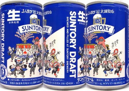 BREWED AND FILLED AT SUNTORY BREWERY ふおか82大博覧会 SUNTORY 生 非熱処理喔 どんたく SUNTORY DRAFT BREWED AND FILLED AT SUNTORY BREWERY 生 非热处理 ふくおか82大会 SUNTORY ORY n SUNTORY DRAFT BREWED AND FILLED AT SUNTORY BREWERY かんば どんたく ●ご協力お願いあき缶は必ずあき缶入れかくずれかくずかごにお入れ下さい。 サントリーリービール 原材料:麦芽、ホップ、スターチ フレジエウム缶 缶底に製造年月旬ロット記号を表示アルを表示 アルコール分約4.5% 4084 350ml 大阪市北区堂島浜2丁目1-40 サントリー株式会社L アル