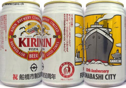 麒麟麦酒株式会社 東京都渋谷区神宮前六二六一 製造所固有記号・製造年月旬・口ット記号は 原材料 麦芽・ホップ・米・コーン・スターチ 内容量 350ml アルコール分約4・5% KIRIN BREW COMPANY NY, LIMITED LAGER BEER BEER KIRININ BREWED FOR キリンビールビール BEER GOOD TIMES 祝 船橋市制50周150周年 ご協力お願い あき缶はかならずあき缶入れか、くずかごに。 開缶の時、ビールが吹き出すことがあります。 振ったり、ぶつけたりしないでください。 あき ずか ごに アルミニウムカン 0 50th Anniversary FUNUNABASHI CITY 缶底部に表示