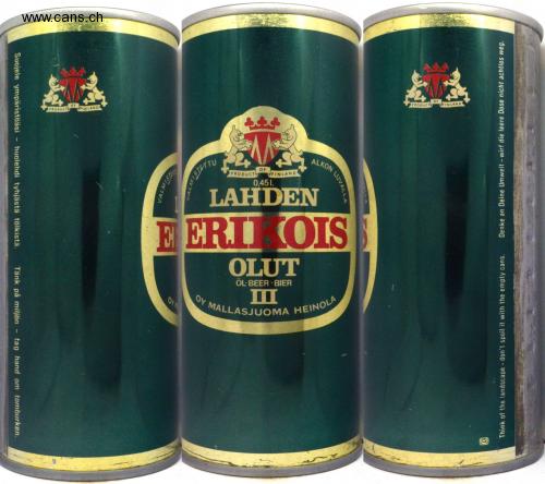 Suojele ympäristöäsi huolehdi tyhjästä tölkistä. Tänk på miljön tag hand om tomburken. PRODUCT OF INLAND VALMISTET ISTETTU VALM 2 PRODUCT OF 0.451. FINLAND ALKON LAHDEN LUVALLA E ERIKOIS OY OY OLUT OL: BEER - BIER III Y MALLASJUOMA HEINOLA PRODUCT OF FINLAND GW Think of the landscape - don't spoil it with the empty cans. Denke an Deine Umwelt - wirf die leere Dose nicht achtlos weg.