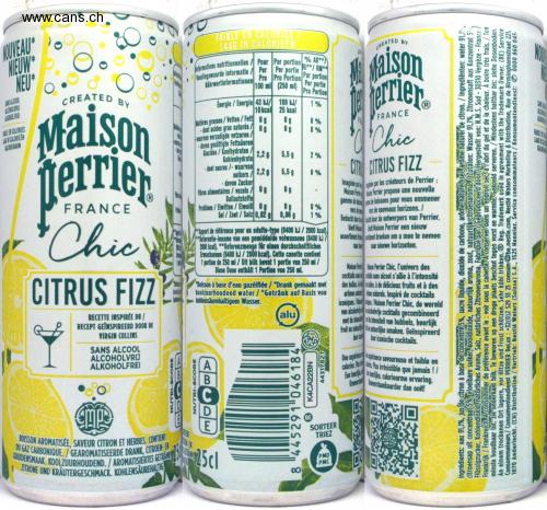 NOUVEAU NIEUW* NEU* SANS ALCOOL ALCOHOLVRIJ ALKOHOLFREI LE EN CALORIES CALORIEEN CALORIENARM CREATED BY Maison terrier +Chic CITRUS FIZZ RECETTE INSPIRÉE DU / RECEPT GEÏNSPIREERD DOOR DE VIRGIN COLLINS SANS ALCOOL ALCOHOLVRIJ ALKOHOLFREI dlib NUTRI-SCORE GOOD NUTRI-SCORE FAIBLE EN CALORIES LAAG IN CALORIEEN Informations nutritionnelles / Pour Par portion Voedingswaarde informatie/Per Per portie Nährwertinformationen Pro Pro Portion 100 ml (250 ml) Energie/Energie 43 kJ/ 108 kJ/ % AR** RI**/ RM** Par portion Per portie Pro Portion CREATED BY Ma Maison fel terrier® 1% 10 kcal 25 kcal Matières grasses/Vetten/Fett 1% F dont acides gras saturés/ 1% waarvan verzadigde vetzuren/ davon gesättigte Fettsäuren Glucides/Koolhydraten/ 60 50 00 FRANCE "Chic CIT CITRUS FIZZ Kohlenhydrate 2,2g 5,5 2% dont sucres/-waarvan suikers/2,2 g 5,5g 6% -davon Zucker Imaginée Protéines/Eiwitten/Eiweiß g Fibres alimentaires/vezels/Og Ballaststoffe 50 80 Sel/Zout/Salz 0,02 g 0,06 g 1% 1% Apport de référence pour un adulte-type (8400 kJ/2000 kcal) Referentie-inname van een gemiddelde volwassene (8400 kJ/ 2000 kcal). **Referenzmenge für einen durchschnittliches Erwachsenen (8400 kJ/2000 kcal). Cette canette contient 1 portion de 250 ml / Dit blik berat 1 portie van 250 ml/ Diese Dose enthält 1 Portion von 250 ml. "Boisson à base d'eau gazélfiée / "Drank gemaakt met koolzuurhoudend water/"Getränk auf Basis von tohlensäurehaltigem Wasser. ABCDE DU GAZ CARBONIQUE/GEAROMATISEERDE DRANK, CITROEN-EN BOISSON AROMATISÉE, SAVEUR CITRON ET HERBES. CONTIENT KRUIDENSMAAK. KOOLZUURHOUDEND./ AROMATISIERTES GETRANS ZITRONE UND KRÄUTERGESCHMACK, KOHLENSÄUREHALTIG VIEN-EN 25cl Maison Per gamme de par les créateurs de Perrier: Perrier propose une nouvelle de boissons pour vous emmener vers des de nouveaux horizons./ vers Bedacht dor door de ontwerpers van Perrier. bied Mat Maison Perrier een nieuw assortiment trent dranken om u mee te nemen aar nieuwe horizonten. Maison Prison Perrier Chic, l'univers des cocktails sails sans alcool s'allie à l'intensité des bulles les à de délicieux fruits et à des aromes natrines naturels. Inspiré de cocktails coniques/N/Maison Perrier Chic, de wereld van alcohol cholvrije cocktails gecombineerd alu met de inte fruit en natur 8 445291 046184 PMD PMC K4CA22BN 44317827 BE SORTEER TRIEZ intensiteit van bubbels, heerlijk natuurlijke smaken. Geïnspireerd dotour iconische cocktails. Une expérienérience savoureuse et faible en calories P Plus irrésistible que jamais!/ Een heerlijka, caloriearme ervaring. Onweerstaanbaarder dan ooit! BT Ingrédients: eau 91,1%, Jus de citron à base de concentré 5%, sucre liquide, dioxide de carbone, arôme naturel, sel, arôme naturel de citron. / Ingrediënten: water 91,1%, citroensap ult concentraat 5%, vloeibare sulker, kooldioxide, natuurlijk aroma, zout, natuurlijk citroenaroma./Zutaten: Wasser 91,1%, Zitronensaft aus Konzentrat 5%, Flüssigzucker, Kohlendioxid, natürliches Aroma, Salz, natürliches Zitronenaroma. Fabriqué par/Geproduceerd door/Hergestellt von: N.W.S. Sud-30310 Vergèze - France Frankrijk/Frankreich. A consommer de préférence avant le: voir sous la canette. A conserver dans un endroit sec, à l'abri du gel et de la chaleur. A boire très frais. / Ten minste houdbaar tot: zie onderkant blik. Te bewaren op een droge plaats beschut tegen vorst en warmte. Gekoeld serveren. / Mindestens haltbar bis: siehe Dosenboden. An einem trockenen Ort lagern, vor Hitze und Frost schützen. Sehr kühl trinken. Reg. Trademark used in agreement with the Trademark Owner. (BE) Service Consommateurs/Consumentendienst PERRIER Belux: +32(0)2 529 55 25 consum@be.nestle.com, Nestlé Waters Marketing & Distribution, Rue de Birminghamstraat 221, 1070 Anderlecht. (CH) Distribution / Vertrieb: Nestlé Waters (Suisse) S.A., 1525 Henniez. Service consommateurs/Konsumentendienst: 0800 860 045. SANG AUT FAIBLE E LAAG IN CA