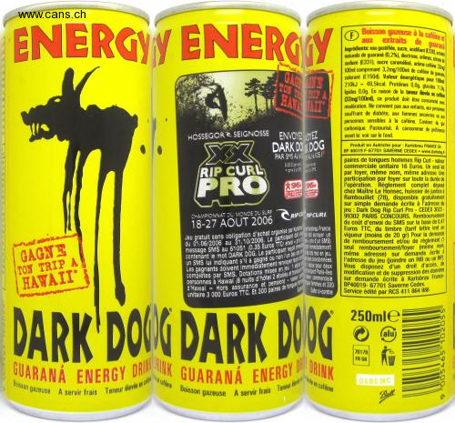 Soft drink Serve chilled High coffee content w afine Soft drink Serve chilled Blevde content natural guaraná (0.2%), dextrose, flavors, citrate Ingredients: carbonated water, sugar, acidifier (E330), extrats with guaraná extracts modification and deletion of data sodium (E331), caramelized sugar, caffeine flavor 32mg | GUARANA ENERGY DRIINK GUARANÁ ENERGY dye (E150d). Energy value for 100mk 100ml including 3.2mg / 100ml of guaraná caffeine, ENERGYY ENERGY Soft drink with caffeine F. Ingredients: carbonated water, sugar, acidifier (E330. Ert natural guaraná (0.2%), dextrose, flavors, citat sodium (E331), caramelized sugar, caffeine flavor 3 100ml comprising 3.2mg / 100ml of quar caffeine GAOON AS RIP YOUR TH WAVA 49.5kcal. Protein 0.0g, carbohydrate 11.8 210kJ - lipids 0.0g. Due to the high coffee content (32mg / 100ml), this product should be consumed ae moderation. Not suitable for children, people suffering from diabetes, pregnant women or people sensitive to caffeine. Contains na carbonic. Pasteurized. To be consumed preferably SEND OYEZ HOSSEGOR SEIGNOSSE before: see on the bottom. DARK DOK DOG BY SMS TO SAU 6105I Produced in Austria for: Karlsbrau FRANCE SA BP 40019 F-67701 SAVERNE CEDEX • www.darkdog.r pairs of men's flip flops Rip Curl - value unit sales 16 Euros. Only one lot per household, same name, same address. A participation per household for the duration of the operation. Full settlement filed at Maître Le Honsec, bailiff at Rambouillet (78), available free of charge on simple written request to the address of game: Dark Dog Rip Curl Pro - CEDEX 3023 - 99302 PARIS COMPETITION. Refund the cost of sending the SMS based on 0.47 Euros including tax, stamp (slow letter rate in vigor (less than 20 gr) For demand reimbursement and / or payment (1 only reimbursement / household (same name, same address) on written request to the address of the game (attach a RIB or RIP. You have a right of access, 0.35 E per anor enOI RIP CURL PRO * price of an S da SMS SMS SMS + SURF WORLD CHAMPIONSHIP RIP CURI. 18-27 AUGUST 2006 CRIF Free game with no obligation to purchase organized by Karileistrau France from 01.06 / 2006 to 31/10/2006. The participant 0o ot send a SMS message to 61051 (0.35 Euros TTC / sending + p-pir of an SMS) ts brought into play. WIN containing the word DARK DOG. The participant receives immediately Winners must immediately return Bun US contact details complete YOUR TRIP A Bransport Paris-iles Commercial beur s women and 200 Continued opposite through HAWAII on written request to Karlsbrau France- BP40019- 67701 Saverne Cedex. Service published by RCS 411 864 986 Suter DARK DOOG DARK DOG 250mle (aluj 70178 URINK ENERGY DRI FR GB GUARANÁ DRINK GUARANÁ ENERGY caffeine ede 06BE 28 C To be served chilled Bev content Ball