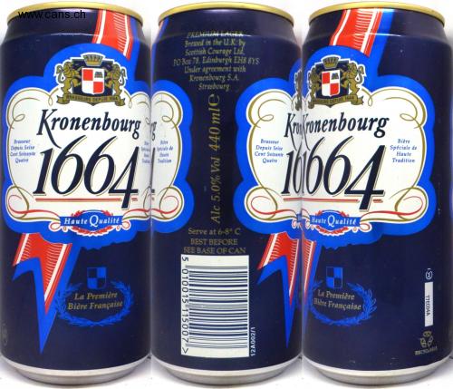 PREMIIM LAGER Brewed in the U.K. by Scottish Courage Ltd, PO Box 78, Edinburgh EH8 8YS Under agreement with Kronenbourg S.A. Strasbourg Alc 5.0% Vol 440 mle Serve at 6-8° C BEST BEFORE SEE BASE OF CAN Brasseur Depuis Seize Cent Soixante Quatre BRASSEURS DEPUIS 1664 Kronenbourg 1664 CK Haute Qualité Bière Spéciale de Haute Tradition Brasseur Depuis Seize Cent Soixante Quatre BRASSEURS DEPUIS 1664 Kronenbourg 1664 Haute Qualité Bikre Bière Spéciale Spéciale de Haute Haut Tradit Tradition La Première Bière Française 5 010015 115007"> 12A002/1 E La Première Bière Française T7EC04A B RECYCLABLE