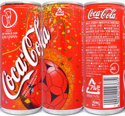 1999 FIFA TM 2002 FIFA WORLD CUP KOREA JAPAN ca-Cola OFFICIAL PARTNER 2002 FIFA WORLD CUP A アルミ Coca-Cola. ●品名 炭酸飲料 原材料名 糖類(果糖 ぶどう糖液糖、砂糖)、カラメル色素、酸 味料、香料、カフェイン ●内容量 250ml ●賞味期限 缶底下段に記載 ●販売者 コカ・コーラ ナショナルセールス (株) 東京都千代田区有楽町1-7-1 国産 ●缶底上段左は製造所固有記号 ★日本コカ・コーラ株式会社認定 サワヤカコーク ★お客様相談室 0120-308509 ●直射日光の当たる車内等、 高温になる場所 にに長時間置かないでください。 ●凍らせないで ください。 内容液が膨張し容器が破損したり、 成分が分離・沈殿することがあります。 ●缶へ 成 影 缶が破損する場合が の衝撃を避けてください。 あぼ にお COCH ●缶を開けた後はすぐ あります。 にお飲みください。●あき缶は ちら JAS かさないようご協力ください。 COCA-COLA、COKEとコカ・コーラは The Coca Cola Company の登録商標です FIFA CAN 「アルミ あき缶はリサイクル Coke 4 902102 023672
