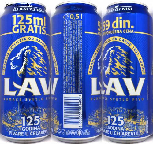 125 PIVARE U ČELAREVU GODINA ALU REKOMERNA 31 GARANCIJA KVALITE DOMAĆE SVETLO PIV PIVO LAW GRATIS 125ml ILI JESI ILI NIS OD DAVNE BEZ e 0,51 KONZERVANSA SRB/BIH/MNE PASTERIZOVANO SV(U)ETLO PIVO. Alkohol: 5,0% vol. Ekstrakt: 10,84% m/m. Sadrži: ječam. Sastojci: voda, ječmeni slad, ječam, hmelj i pivski kvasac. Neto količina: 0,5 l. Upotrebljivo do:/ Najbolje upotr(ij)ebiti do: datuma označenog na dnu limenke. Proizvodi i puni: CARLSBERG SRBIJA D.O.O, PROLETERSKA 17, ČELAREVO, SRBIJA. Tel.: +381 21 755 06 33. Proizvedeno u:/Država por(ij)ekla: Srbija. Uvoznik za BiH: Carlsberg BH d.o.o, Trg međunarodnog prijateljstva br.25, Sarajevo. Uvoznik za MNE: Carlsberg Montenegro d.o.o, Mahala b.b. Golubovci, Podgorica. Čuvati na temperaturama 8 600331 001480"> od 5 do 15°C i tamnom mjestu. Energetska vrednost: 164 kJ/39kcal na 100ml. UPOTREBA Han PRODAJA S ZABRANJENA 18+ PIVAR GODINA 125 VARE U ČELAREVU LAV DOMA ACE SVETLO PIVO GARANCIJA KVALITE N ALITETA PRE PREPORUČENA CENA 559 din. ESI ILI NISI OD Ball Z7AC17B www.lavpivo.rs