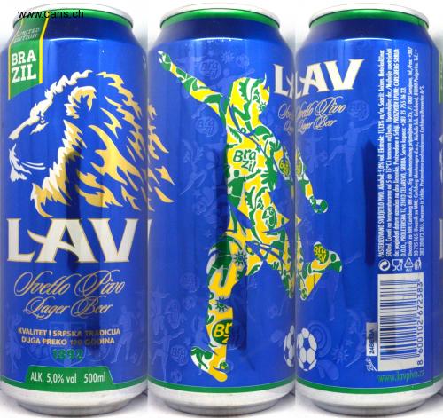 ZIL BRA EDITION LIMITED Bra Zil Bra The Wello Pivo LAV Qu Lager Beer Bra DUGA PREKO 120 GODINA KVALITET I SRPSKA TRADICIJA Lager Beer Svetlo Pivo LAV Br 1892 ALK. 5,0% vol 500ml 8 600102 672383 ORA PASTERIZOVANO SV(U)ETLO PIVO. Alkohol: 5,0% vol. Ekstrakt: 11,13% m/m. Sadrži: Ječam. Neto količina: 500ml. Čuvati na temperaturama od 5 do 15°C i tamnom m(i)estu. Upotrebljivo do:/Najbolje upotrijebiti do: pogledati datum označen na dnu limenke. Proizvedeno u Srbiji. PROIZVODI I PUNI: CARLSBERG SRBIJA D.O.O., PROLETERSKA 17, 21413 ČELAREVO, SRBUA. Servis kupaca: +381 21 755 06 33. Uvoznik za BiH: Carlsberg BH d.o.o., Trg međunarodnog prijateljstva br.25, 71 000 Sarajevo, Tel./Fax: +387 33 715 165. Uvoznik za MNE: Carlsberg Montenegro d.o.o., Mahala b.b. Golubovci, 81000 Podgorica. Tel.:+ 382 20 872 265. Uvezeno iz Srbije. Proizvedeno pod nadzorom Carlsberg Breweries A/S. Ball Z4BE12A www.lavpivo.rs