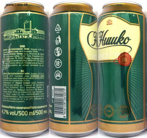 Произведено у Србији Переведено у Србији ALU CHuuko SRB СВЕТЛО ПАСТЕРИЗОВАНО ПИВО. Алкохол 4,7% vol. Садржи: јермени слад. Нето количина: 500ml. Производи: Нишка пивара д.о.о., Игманска бб, 18000 Ниш, Република Србија. Пуни: Terra Production D.0.0. Војводе Путника, 78, 22320 Инђија, Република Србија. Кесплатна инфо линија за Србију: 0800/077-770. Чувати на сувом и тамном месту, на температури од 5 до 15°С. Најболее употребити до датума означеног на дну Алименке, BG СВЕТЛА ПАСТЬОРИЗИРАНА БИРА. Алкохол 4,7 % vol. Екстракт 11°Р. Съставки: вода, ечемичен малц царевичен грис, хмел. Енергийна стойност 160 kJ/ 39 kcal на 100 мл. Нето количество: 500 мл. Произведено от: "ишка Пивара" Д.О.О., Република Сърбия, гр. Ниш 18000, ул. "Игманска" бб, Бутилирано от: "Terra Production" D.O.O, Република Сърбия, гр. Инджия 22320, ул. "Войводе Путника" 78. Вносител: "Нишка пивара" ЕООД, гр. София 1404, бул. "България", ж.к. "Бокар" сграда 21, тел.: +359899224422, e-mail: officebg@niskapivara.rs. Да се съхранява на сухо и ТЪМНО място, на температура от 5 до 15°С. Най-добър до: датата обозначена на дъното. Алкохо/нето количина/Нето количество ство 4,7% vol./500 ml/500 мл. мл. Ball ZBAM198 (18+ 8 606108 261071 Нетела екстракта (500ml) 11% садржа алкохо 4,7% Vol VOXONVE