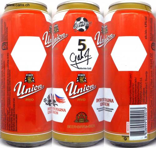 Neto/Inhalt/Cont./0,50 L/Net. cont. 16,9 FL.OZ. Svetlo pivo. Uporabno najmanj do datuma, odtisnjenega na dnu pločevinke. Hranite na hladnem! Svijetlo pivo"lager", pasterizirano. Upotrijebiti najbolje do datuma otisnutog na dnu limenke. Uvoznik za Hrvatsku: UNIIMPEX d.o.o. Rijeka. Cuvati na hladnom! Zemlja podrijetla: Slovenija. Best before: see date on the base of can. Store in a cool place! odiagajte ov seriertnjaka ali bination za reciklaza Stitite okolinul Prazne limenka odložite u košare za smeće ili RECYCLING sabirnike za reciklažu. ANO 1964 Uslnion 5 PIVO ANNO 1864 ANNO 1864 Marinko Galič Union PIVO PIVO PIVOVARNA LINIO UNION Union PIVO VIRIDER Generalni pokrovitelj slovenske UNINION PIVOVARNA nogometne reprezentance BEER-BIRRA BIER Untion 100606 M2CD21A 3 838999 050013 Proizvaja in polni/Proizvodi i puni/ Brewed and canned by/ Prodotta e confezionata dalla / Original Brauhausfüllung: PIVOVARNA UNION d.d. 1000 Ljubljana Pivovarniška ulica 2, Slovenija Neto/Inhalt/Cont./0,50 L/Net. cont. 16,9 FL.OZ Svetlo pivo. Uporabno najmanj do datuma, odtisnjenega na dnu pločevinke. alk./alc.: 4,9% vol Varujte okoljel pramjone pločevinke odlagajte le v smetnjake ali zbiralnike Medio na biner dotxienia o