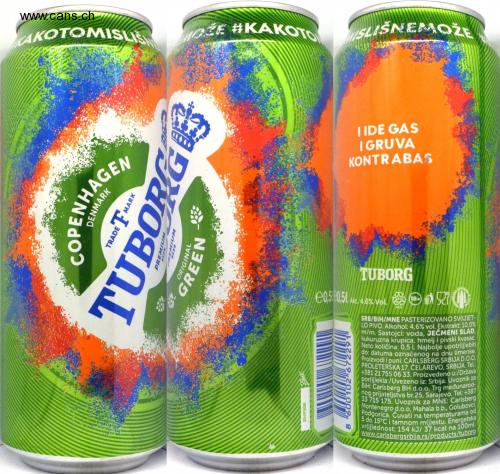 KAKOTOMISLIS MOZE #KAKOTO MISLIŠNEMOŽE NHAGEN TRADE TMARK TUBORG PUM ORIGINAL GREEN 201F20B IIDE GAS IGRUVA KONTRABAS TUBORG e0,50,51 Alc. 4.6% Vol. 00102 8 ALU 18+ ( UPOTRERA SRB/BIH/MNE PASTERIZOVANO SV(IJ)ET- LO PIVO. Alkohol: 4,6% vol. Ekstrakt: 10,0% m/m. Sastojci: voda, JEČMENI SLAD, kukuruzna krupica, hmelj i pivski kvasac. Neto količina: 0,5 l. Najbolje upotr(ij)ebiti do: datuma označenog na dnu limenke. Proizvodi i puni: CARLSBERG SRBIJA D.O.O. +381 21 755 06 33. Proizvedeno u:/Država PROLETERSKA 17, ČELAREVO, SRBIJA. Tel.: por(ij)ekla:/Uvezeno iz: Srbija. Uvoznik za BiH: Carlsberg BH d.o.o, Trg međunarod- nog prijateljstva br.25, Sarajevo. Tel: +387 33 715 175. Uvoznik za MNE: Carlsberg Montenegro d.o.o, Mahala b.b., Golubovci, Podgorica. Čuvati na temperaturama od 5 do 15°C i tamnom mjestu. Energetska vr(ij)ednost: 154 kJ/ 37 kcal na 100ml. www.carlsbergsrbija.rs/products/tuborg