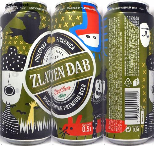 XX XXX X X X + TED EDITION MACEDONIAN PREM + XXXX X X X X PRILEPSKA PRODUCT OF QUALIT PIVARNICA MACEDONIA SINCE 1924. ZLATTEN DAB MACEDONIAN Lager Beer BREWED WITH NATURAL INGREDIENTS PREMIUM BEER 0,51 HETO/NET: DESIGNED BY VLADIMIR LUKASH MACEDONIAN PREMIUM BEER XXX МК ПАСТЕРИЗИРАНО СВЕТло пиво СОСТОЈКИ: ВОДА, СЛАД (ОД ЈАЧМЕН), НЕСЛАДУВАНИ ЖИТАРКИ, ХМЕЉ, ЈАГЛЕРОД ДИОКСИД. АЛКОХОЛ: 4,5% ВОЛ. +/- 0,5% ВОЛ. ОСНОВНА СЛАДОВИНА: 11%. ЕНЕРГЕТСКА ВРЕДНОСТ: 161kJ/100ml (39 kcal/100ml). HETO ВОЛУМЕН: 0,5 ЛИТРИ. ДА СЕ ЧУВА НА ЛАДНО, ПОДАЛЕКУ ОД ДИРЕКТНА ИЗЛОЖЕНОСТ НА СОНЦЕ. НАЈДОБРО ДО:/СЕРИЈА: ВИДИ НА ДНОТО НА ЛИМЕНКАТА UK PASTEURIZED LAGER BEER INGREDIENTS: WATER, MALT (OF BARLEY), UNMALTED CEREALS, HOPS, CARBON DIOXIDE. ALCOHOL: 4,5%VOL.+/-0,5% VOL. MAIN EXTRACT: 11%. CALORIES: 161kJ/100ml (39 kcal/100ml). NET VOLUME: 0,51. STORE IN A COOL PLACE, AWAY FROM DIRECT SUNLIGHT. BEST BEFORE:/LOT: SEE ON THE BOTTOM OF THE CAN. 0,5 HETO/NET: 5 "310043 000888" ZBAD17A Ball ALU ПРОИЗВЕДЕНО ОД: ПРИЛЕПСКА ПИВАРНИЦА-АД, УЛ. ЦАНЕ КУЗМАНОСКИ 1, 7500 ПРИЛЕП, Р. МАКЕДОНИЈА; ЗА ПРИЛЕПСКА ПИВАРНИЦА - АД ПОЛНИ: КАРЛСБЕРГ СРБИЈА д.0.0. PRODUCED BY: PRILEPSKA PIVARNICA - AD, CANE KUZMANOSKI 1, 7500 PRILEP, REPUBLIC OF MACEDONIA; BOTTLED BY: CARLSBERG SERBIA D.0.0. FOR PRILEPSKA PIVARNICA - AD. MORE INFO: WWW.ZLATENDAB.COM.MK xxxxxxx