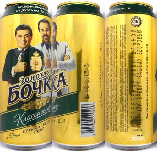 от Дуэта им. Чехова Мужские рассказы ЗОЛОТАЯ БОЧКА MOND SELT MONDE 2006 SELECT Kraccwreck ПРЕМИАЛЬНОЕ ПИВО HOE 0,5 л АЛК 5,2% ОБ. www.bochka.ru ПРОДАЖА 18 АЛК 5,2% ОБ. пр ПРЕМИАЛЬНОЕ ПИВО ЗАО «Пив 0,5 л Рассия. 117546, г. Моска Пиво «Золотая Бочка (классическое)» светлое. Пастеризованное. Изготовитель: ЗАО «Пивоварня Москва-Эфесе: Россия, 117546, г. Москва, ул. Подольских Курсантов, 156; Адреса производства: Филиал ЗАО «Пивоварня Москва-Эфес» в г. Калуга А": Россия, 248009, г. Калуга, Грабцевское ш., 71; Филиал ЗАО «Пивоварня Москва-Эфес» в г. Ульяновск Е*: Россия, 432072, г. Ульяновск, 44-й пр. Инженерный, 1; Филиал ЗАО «Пивоварня Москва-Эфес» в г. Уфа у*: Россия, 450027, Республика Башкортостан, г. Уфа, ул. Трамвайная, 2/1; Филиал ЗАО «Пивоварня Москва-Эфес» в г. Новосибирск В*: Россия, 630526, Новосибирская область, Новосибирский район, п. Элитный, Советское ш., 1. "Адрес производства указан в коде срока годности, последний знак нижней строки. Телефон горячей линии: (4842) 53-82-41. Экстрактивность начального сусла 11,8%. Алк. 5,2% об. Содержание этилового спирта 5,2 мл в 100 мл / 26 мл в 0,5 л продукции. Состав: вода питьевая, солод пивоваренный ячменный, хмель и хмелепро- дукты. Дата розлива (верхняя строка) и срок годности (нижняя строка) указаны на дне банки. Хранить в сухом помещении при t 2°С - 30°С. Номинальный объём 0,5 л. Пищевая / энергетическая ценность на 100 г: Углеводы не более 3,1 г / 184 кДж (44 ккал). ТУ 9184-030-48354931-2012. Алкоголь противопоказан детям и подросткам до 18 лет (до 21 года для Республики Казахстан), беременным и кормящим женщинам, лицам с заболеваниями центральной нервной системы, почек, печени и других органов пищеварения. Содержание в продукции вредных для здоровья веществ не превышает допустимого уровня, установленного «Едиными санитарно-эпидемиологическими и гигиеническими требованиями к товарам, подлежащим санитарно-эпидемиологическому надзору (контролю)» п. 8.4. УПОТРЕБЛЕНИЕ АЛКОГОЛЬНОЙ ПРОДУКЦИИ ИИ ВРЕДИТ ВАШЕМУ ЗДОРОВЬЮ Пиво «Золотая Бочка (классическое)» светлое Пастеризованное 4 "605664 000289' SONA2AEDME REXAM