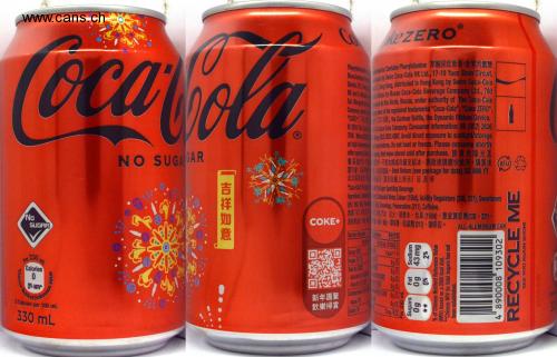 CocaCola NO SUGA GAR No SUGAR Per Chinese 330 ml Calories 0 0% NRV* Nutrient erenca Value 0 Calories per 100 mL 330 mL 吉祥如意 Phenylket keZERO asdbusrics: Contains Phenylalanine 苯酮尿症患者:含苯丙氨酸[ red by Swire Coca-Cola HK Ltd., 17-19 Yuen Shun Circuit, ALL Hong Kong, distributed in Hong Kong by Swire Coca-Cola HK and in Mac Macau by Macau Coca-Cola Beverage Company Ltd., 780 Manufacture Shatin, N.L. Est. Margina Company "COKE 2024 The 7000 Maca at high after opening dha Verde, Macau, under authority of The Coca-Cola of the registered trademarks "Coca-Cola", "Coke ZERO", the Contour Bottle, the Dynamic Ribbon Device. The Coca-Cola Company. Consumer Information: HK (852) 2636 83 2823 4567. Avoid direct exposure to sunlight/storage mperatures. Do not heat or freeze. Please consume shortly 1 g. Beast when stored cold after purchase. 請避免陽光直 雇/高溫洗符,預「但許存,不要加熱或冷藏至結冰,開啟後請盡快飲用。購買後 (alu) 請冷藏。 1 Best Before (see package for date) DD MM YY 此日期前最佳類「不是佳(請見包裝上所示)日月年 S No "Coca-Cola Super Sparkling Beverage Ingredients Con Carbonated Water, Colour (150d), Acidity Regulators (338, 331), Sweeteners 1951, 95, 955 Favourings, Preservative (211), Caffeine. COKE+ OXXO 無糖可口果期 加裝汽水成分:碳酸水、色素(150d)、酸度調節劑(338、331)、 ALL-ALUMINIUM CAN Energy 15 Total fat Saturated -Trans tot 新年團聚 飲樂掃賞 th 品、面、蝦、調味劑、防腐劑(211)、咖啡因。 營養資料] 加期或海100毫升 FOR FOR FOR FOR FOR Og/5 Sodium Per 330 mL Sugars 43 mg 2% 60 ** % of Chinese Nutrient Reference Value **Chinese NRV for total sugars has not (NRV) based on a 2000 kcal diet. been established. RECYCLE ME SEE YOU AGAIN SOON! 4" 890008" 109302