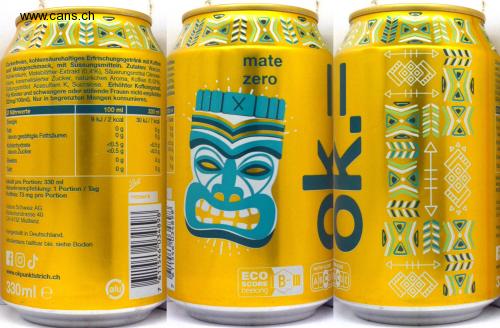 Zuckerfreies, kohlensäurehaltiges Erfrischungsgetränk mit Koffein und Mategeschmack, mit Süssungsmitteln. Zutaten: Wasser, Kohlensäure, Mateblätter-Extrakt (0,4%), Säuerungsmittel Citronen- säure, karamellisierter Zucker, natürliches Aroma, Koffein (0,02%), Süßungsmittel: Acesulfam K, Sucralose. Erhöhter Koffeingehalt Für Kinder und schwangere oder stillende Frauen nicht empfohlen (22mg/100ml). Nur in begrenzten Mengen konsumieren. Nährwerte Energie 100 ml 330 ml 30m Koffein asser men ehalt X mate zero 9 kJ/2 kcal 30 kJ/7 kcal 09 Fett davon gesättigte Fettsäuren 0g 00 60 09 <0.5 g <0.5g Kohlenhydrate <0.5 g <0.5g 96 davon Zucker 09 Og Eweiss 0g Og Og Salz Inhalt pro Portion: 330 ml Ball Verzehrsempfehlung: 1 Portion / Tag Koffein: 73 mg pro Portion 11E53A21B Valora Schweiz AG Hofackerstrasse 40 CH-4132 Muttenz Hergestellt in Deutschland. Mindestens haltbar bis: siehe Boden www.okpunktstrich.ch 330ml e alu 7611546 034 ECO SCORE beelong NUTRI-SCORE B-III ABO SCORE ++ 回回 HH CH Min 蛋蛋 Zu UNG Kat 乙 公 Su Verz Ko ON