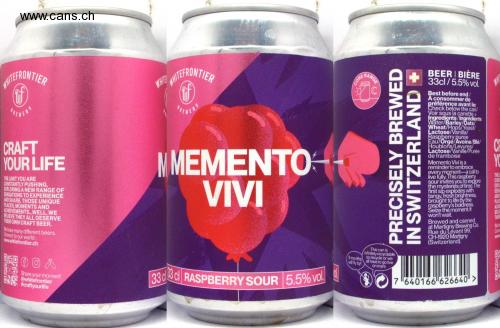 WHITEFRONTIER D WHITE WHITEFRONTIER if EVERY CRAFT YOUR LIFE THE LIMIT YOU ARE CONSTANTLY PUSHING, EXPLORING A NEW RANGE OF SENSATIONS TO EXPERIENCE AND SHARE. THOSE UNIQUE PLACES, MOMENTS AND ACHIEVEMENTS...WELL, WE BELIEVE THEY ALL DESERVE THEIR OWN CRAFT BEER. We brew many different beers. Connect to our world: www.whitefrontier.ch 自製 O A Share your moment @whitefrontier #craftyourlife M MEMENTO VIVI 33 C RASPBERRY SOUR 5.5% vol CORE RANGE 9 months will fly by! BEER BIÈRE 33cl/5.5% vol. Best before end/ A consommer de préférence avant le: Check below the can/ Voir sous la canette Ingredients/Ingrédients Water/Barley/Oats/ Wheat/Hops/Yeast/ Lactose/Vanilla/ Raspberry puree Eau/Orge/Avoine/Blé/ Houblons/Levures/ Lactose/Vanille/Purée de framboise Memento Vivi is a reminder to embrace every moment-a call to live fully. This raspberry Sour invites you to explore the mysteries of time. The first sip explodes with tangy, fresh brightness, brought to life by the raspberry's boldness. Seize the moment; it won't wait. Brewed and canned at Martigny Brewing Co. Rue du Levant 99, CH-1920 Martigny (Switzerland). C YO OX THE CONS EXPL SENS ANDS PLAC ACH BELIE THE Web Conne www PRECISELY BREWED IN SWITZERLAND + This can is infinitely recyclable so recycle or we all have to go live on mars 7 640166 626640"> 福