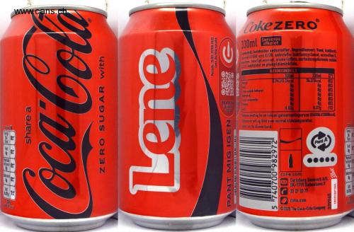 share a Energi 30% 1kcal Fedt Mattede edtsyrer 0% Og Sukkerarter Og Salt 0.07g 12 100ml: FJ02kcal ZERO SUGAR with Coke.dk/shareacoke Periode: 15/05-31/08 2025 Coke ZERO Serveres 330ml afkølet Laskedrik. Indeholder sødestoffer. Ingredienser: Vand, kuldioxid. farvestof (E150d), syre (E338). sødestoffer (natriumcyclamat, acesulfam K. martam), naturlige aromaer, aroma koffein, surhedsregulerende midde PER 31. Indeholder en phenylalaninkilde. NÆRINGSINDHOLD 100ml 0.9kJ/0.2kcal 330ml 3kJ/1kcal Energ Og Fedt heral mattede fedtsyrer: Og Kulhydrat beral sukkerarter: Og SCAN MIG Protein: Og OG VIND FEDE Salt 0.02g 0.07 (12) PREMIER PANT T MIG IGEN Bedst for Se dåsens bund. Referenceindtag for en voksen gennemsnitsperson (8400k1/2000kcal) Opbevares tørt og ikke over normal stuetemperatur, 5 "740700 982972 coke.com Energ 3 Pant A 1kcal Fedt Og Mattede fedtsyrer Carlsberg Danmark A/S. DK-1799 København V 33 27 33 77 coke.com 52025 The Coca-Cola Company Ball 16D51BF19A 339965 Sukkerarte 00 0.079 100