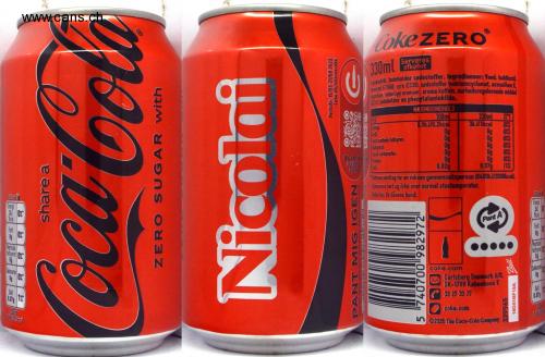 330ml share a Energi 3 0% 1kcal Fedt Og 0% Mattede 90 fedtsyrer 0% Og Sukkerarter Og Salt 0.07 0% 12 100ml: 05/0.2kcal 64 ZERO SUGAR with Periode: 15/05-31/08 2025 Coke.dk/shareacoke Coke ZERO 330ml Serveres afkølet Laskedrik. Indeholder sødestoffer. Ingredienser: Vand, kuldioxid. farvestof (E150d). syre (E338), sødestoffer (natriumcyclamat, acesulfam K aspartam), naturlige aromaer, aroma koffein, surhedsregulerende middel E331 Indeholder en phenylalaninkilde. NÆRINGSINDHOLD 100ml PER Energi 0.9kJ/0.2kcal 330ml 3kJ/1kcal (0%) Og (0%) Fedt heraf mattede fedtsyrer: Og (02) Kulhydrat Og beral sukkerarter: Og SCAN MIG Protein: Og Salt 0.02g 0.07 (12) PRAVEN SRONSANNES FOR PANT MIG IGEN Bedst for Se dåsens bund. Referenceindtag for en voksen gennemsnitsperson (8400kJ/2000kcal) Opbevares tørt og ikke over normal stuetemperatur. 5 740700 982972 Energi Pant A 1kcal Fedt Og cake.com Carlsberg Danmark A/S. DK-1799 København V 33 27 33 77 coke.com 2025 The Coca-Cola Company Ball 339965 16D51BF19A Salt 0.079 100ml C.SEJIC Mattede fedtsyrer Og Sukkerarte 00
