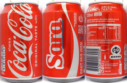 share a Energi 594 7% 139cal Fedt 0% Og Mattede fedtsyrer 0% Og 35g 2 & & & & 383 Salt 6 100ml: 10/42kcal ORIGINAL TASTE with Periode: 15/05-31/08 2025 Coke.dk/shareacoke SCAN MIG OG VIND FEDE PRAMER PANT MIG IGEN JEG ER IKKE AFFALD. JEG SKAL GENANVENDES ER Coke 330ml ORIGINAL ® TASTE Serveres afkølet Læskedrik. Ingredienser: Vand, sukker, kuldioxid, farvestof E150d), syre (E338), naturlige aromaer, aroma koffein. NÆRINGSINDHOLD 100ml 330ml (%) PER 180kJ/42kcal Energi 594kJ/139kcal (7%) Fedt Og (%0) 60 heraf mættede fedtsyrer: Og Og (0%) Kulhydrat: 10.6g 35g (13%) heraf sukkerarter: 10.6g 35g (39%) G Protein: Og Og (0%) Salt Og Og (0%) Bedst før: Se dåsens bund. *Referenceindtag for en voksen gennemsnitsperson (8400kJ/2000kcal). Opbevares tørt og ikke over normal stuetemperatur. Energ Pant A 5940 139 Fedt 5 "701872 203005 coke.com Carlsberg Danmark A/S, DK-1799 København V 33 27 33 77 coke.com 52025 The Coca-Cola Company 339962 16D51AF28C Ball 1801 JA 300 Bakkert 359 Mattede fedtsyre Og 80