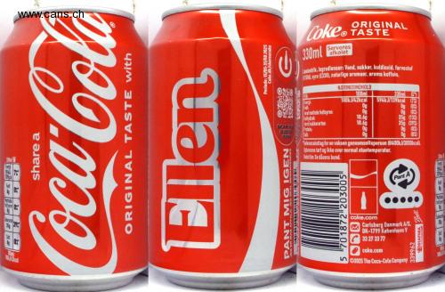 Energi 594 7% 139kcal Fedt Og 30 Mattede fedtsyrer 0% Og Sukkerarter 39 35g Salt Og && 100ml: 100/42kcal share a CORIGINAL TASTE with Periode: 15/05-31/08 2025 Coke.dk/shareacoke C Coke 330ml Serveres afkølet ORIGINAL TASTE Laskedrik. Ingredienser: Vand, sukker, kuldioxid, farvestof E150d), syre (E338), naturlige aromaer, aroma koffein. NÆRINGSINDHOLD PER 180kJ/42kcal Energi 100ml Og 330ml (%) 594kJ/139kcal (7%) Og (0%) Fedt heraf mættede fedtsyrer: Og Og (0%) Kulhydrat: 10.6g 35g (13%) heraf sukkerarter 10.6g 35g (39%) SCAN MIG G Protein: Og Og (0%). OGVIND FEDE Salt Og Og (0%) PREMIER PANT MIG IGEN JEG ER IKKE AFFALD. JEG SKAL GENANVENDES Referenceindtag for en voksen gennemsnitsperson (8400kJ/2000kcal). Opbevares tørt og ikke over normal stuetemperatur. Bedst før: Se dåsens bund. 5 701872 203005 ☑ coke.com Ener Pant A 5940 139 Fedt Og Mattel fedtsyre Ball Og Sukkera 35g Carlsberg Danmark A/S, DK-1799 København V 33 27 33 77 coke.com 52025 The Coca-Cola Company 16D51AF06A 339962 Salt