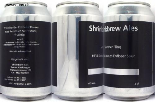 Erfrischendes Erdbeer/Kokos- nuss Sauerbier, sanft sauer, fruchtig Inhalt Gerstenmalz, Hafermalz, Hefe, Hopfen, Erdbeerpuree und -Sirup, Kokosnusspuree und -sirup, Wasser Naturtrüb und ungefiltert Hergestellt von: Shrinkbrew Ales Kaspar Scheidegger Muttenzerstrasse 125 CH-4133 Pratteln Gebraut am: 19.1.2025 mind. Haltbar bis: 31.12.2025 kühl und dunkel lagern! Shrinkinkbrew Ales Som Sommer Fling #131 Kokos Kokosnuss Erdbeer Sour 6.3 Vol. 3 dl