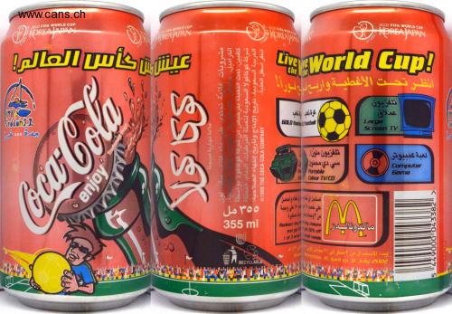 C SAA 2002 FIFA WORLD CUP DEKOREA JAPAN 1999 FIFA WORLD CUP KOREA JAPAN عيشين كأس العالم Jeddah 23 جدة 000 غيرا FIFA TM 1999 2002 FIFA WORLD KOREA JAPAN 1999 2002 FIFA WORLD CUP KOREA JAPAN Live World Cup! the the انظر تحت الأغطية واربع ني نوراً. تلفزيون عملاق كرة ذهب اذهب GOLD foot football Lore Screen TV وکاکو علامة تجارية مسجلة مشروبات غازية تحتوى على ماء غانی سك لون 34 طبية انظر أسفل العلبة. الكراميل - العربية السعودية تاريخ الإنتاج وتاريخ إنتهاء الصلاحية شركة كوكاكولا السعودية لتعبئة المرطبات، الدمام، المملكة كافيين. تمت التعبئة بترخيص من شركة كوكاكولا بواسطة ©1999 THE COCA-COLA COMPANY Coca-Cola enjoy G Trademark Regd. تلفزيون ملون سي دي محمول Portable Col Colour TV/OD O ٣٥٥مل 355 ml RECYCLABLE استبدل في نضارة الى غطاء واحصل على خصم لم اسم على وجبة من 3 وجبات منه بنات صغيرة Redeem any any closure and get at 50% off 1 of 3 small small meals M ماكدونالدز ببدأ الاستبدال من ٣ صفر إلى ۲۱ جمادى الأولى " Red Redemption: 15 April to 31 July 2002 الحان وادام مادارا دا اعلان لعبة كمبيوتر Computer Game 00006777 5