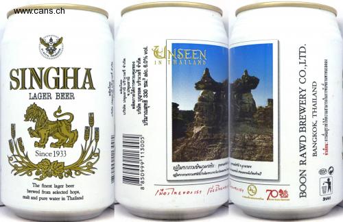 BY ROYAL ERMISSIO NOI SINGHA LAGER BEER Since 1933 The finest lager beer brewed from selected hops, malt and pure water in Thailand 8 850999 113005 ผลิตโดย บริษัท ปทุมธานี บริวเวอรี่ จำกัด ผลิตโดย บริษัท ปทุมธานี บริวเวอรี่ จำกัด จ.ปทุมธานี ผลิตภายใต้การควบคุมของ บริษัท บุญรอด บริวเวอรี่ จำกัด ปริมาณสุทธิ 330 ซม. alc. 6.0% vol. UNSEEN IN THAILAND ปฏิมากรรมหินภูผาเทิบ : อุทานว่า ถูกพงติ мшикъ ปฏิมากรรมธรรมชาติที่กำเนิดจากการกัดกร่อนของ น้ำ คมนานนับร้อยล้านปี nevosis [Vestness Ine 0151 การท่องเที่ยวแห่งประเทศไทย 70% BOOM RAND BREWERY BOON RAWD BREWERY CO.,LTD. BANGKOK, THAILAND คำเตือน : การดื่มสุราทำให้ความสามารถในการขับขี่ยานพาหนะลดลง SHAH