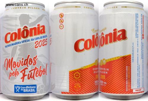 CERVEJA PILSEN PATROCINADORA OFICIAL DA COPA DO BRASIL Colônia 2025 Movidos pelo Futel Copa Betano do BRASIL 898032 910120 CERVEL JA PILSEN 18+ C Cerveny PILS PILSEN CERVECERVEJA 350 350 mL 4,3% 4.3% v/v/ Cerveja CER SECO, AREAS TEOR ALCOÓLICO 4.3% v/v. MALTE, MILHO, LUPULO, ANTIOXIDANTE HAS 316 e INS 223) E ESTABILIZARTE (INS 405) ALÉRGICOS: CONTÉM DERIVADOS DE CEVADA E PODE CONTER DERIVADOS DE TRIGO. CENTEIO E AVEIA. CONTÉM GLUTEN. VALOR ENERGÉTICO: 39.0 kcal/100 mL. PRODUZIDO E ERVASILMADO SOB RESPONSABILIDADE DE INAR-INDUSTRIA NACIONAL DE BEBIDAS RUA BARAO DO RIO BRANCO 4.189 JARDIM GISELA TOLEDO/PR, CNPJ 82 206.004 1.95 VALIDADE DO INDUSTRIA BRASILEIRA. MARCA REGISTRADA. APRECIE COM MODERAÇÃO VENDA PROIBIDA PARA MENORES DE 18 ANOS. COLONIACERVEJA REGISTRO MAPA: PR 000270-4.000006 SAC: 0800-7046100, WWW.INAB.COM.BR TRS1C27