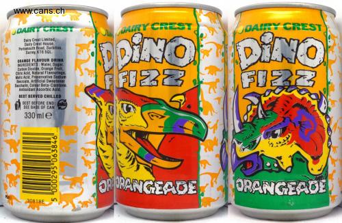 DAIRY CREST Dairy Crest Limited, Dairy Crest House, Portsmouth Road, Surbiton, Surrey, KT6 5QL. ORANGE FLAVOUR DRINK INGREDIENTS: Water, Sugar, Carbon Dioxide, Orange Fruit, Citric Acid, Natural Flavourings, Malic Acid, Preservative Sodium Benzoate, Artificial Sweetener Saccharin, Colour Beta-Carotene. Antioxidant Ascorbic Acid. BEST SERVED CHILLED BEST BEFORE END: SEE BASE OF CAN 330 ml e OAIRY CREST DDINGO FIZZ 0 ODAIRY CREST) DINO FIZZ PUN 1 30818E 5 000295 063846 OR ORANGEADE ORANGEADE