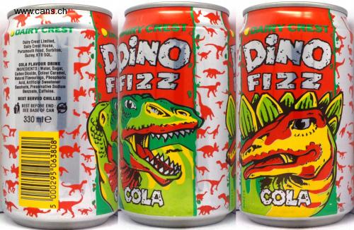 5 000295 063808 DAIRY CREST Dairy Crest Limited, Dairy Crest House, Portsmouth Road, Surbiton, Surrey, KT6 5QL. COLA FLAVOUR DRINK INGREDIENTS: Water, Sugar, Carbon Dioxide, Colour Caramel, Natural Flavourings, Phosphoric Acid, Artificial Sweetener Saccharin, Preservative Sodium Benzoate, Caffeine. BEST SERVED CHILLED BEST BEFORE END: SEE BASE OF CAN 330 mle DOING 2 FIZZ FF DAINT CREST DINO FIZZ COLA 30821E 30821E COLA
