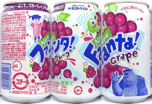 ファンタは映画「モンスターズ・インク」のマーケティング・パートナーです。 FANTAとファンタ ファンタと一緒にモンスターズ・インクみよう! DISNEY PIXAR モンスターズ・インク 2 ビタミンBのたっぷり CDISNEY/PIXAR Col Company の登録商標です 商品名 炭酸飲料 原材料名 果糖ぶどう 薬県香料、酸味料、カラメル色素、野菜 素、ぶどう果皮色素、酸化防止剤(ビ タミンC)、ナイアシン、パントテン酸Ca、 ビタミンB6、葉酸、ビタミンB12 内容量 1350ml 賞味期限 缶底下段に記載 ●販売者コカ・コーラナショナルセールス 東京都千代田区有楽町1-7-1 国産 ●底上段左は製造所固有記号 ★ 日本コカ・コーラ株式会社認定 お客様相談室 0120-308509 ●を開けた後はすぐにお飲みください。 直 日光の当たる車内等、高温になる場所に長時 置かないでください。缶への衝撃をさけ てください。缶が破損する場合があります。凍 らせないでください。内容液が膨張し缶が破損 したり、成分が分離・沈殿することがあります。 ●おき缶はちらかさないようご協力ください。 JAS 902102 034463 サワヤカコーラ スチール EAD たんぱく質 あき缶はリサイクル 脂質 ew New O サンタ! グレープ 0 0 栄養成分表示 (100m 500ml当り) 無果汁 「エネルギー 49kcal 炭水化像 炭水化物 12g 0g ナトリg ナトリウム 0mg Og ビタミルg ビタミンB6 0.4mg ® スチール Ne New O manta! Grape ● てください 豬鄉 したい