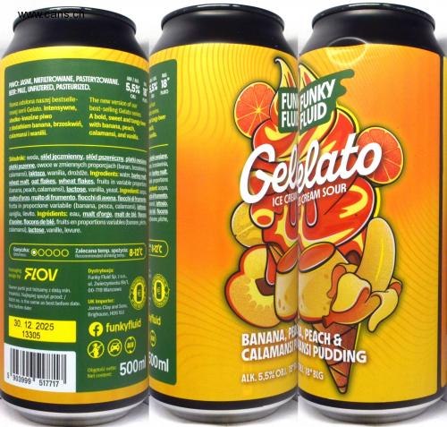 PIWO: JASNE, NIEFILTROWANE, PASTERYZOWANE. BEER: PALE, UNFILTERED, PASTEURIZED. Nowa odsłona naszej bestselle- rowej serii Gelato. Intensywne, słodko-kwaśne piwo ABV/ALK. 5,5% OBJ The new version of our best-selling Gelato series. A bold, sweet and tangy beer z dodatkiem banana, brzoskwiń, with banana, peach, calamansi i wanilii. calamansi, and vanilla. ALK BLG 5.5% 18° OBL PLATO dour to series tangy beer ach vanilla Składniki: woda, słód jęczmienny, słód pszeniczny, płatki owsiane płatki pszenne, owoce w zmiennych proporcjach (banan, brzoskwinia calamansi), laktoza, wanilia, drożdże. Ingredients: water, barley mat wheat malt, oat flakes, wheat flakes, fruits in variable proportions (banana, peach, calamansi), lactose, vanilla, yeast. Ingredienti: acqua malto d'orzo, malto di frumento, fiocchi di avena, fiocchi di frumento frutta in proporzione variabile (banana, pesca, calamansi), lattosio vaniglia, lievito. Ingrédients: eau, malt d'orge, malt de blé, flocons d'avoine, flocons de blé, fruits en proportions variables (banane, pêche, calamansi), lactose, vanille, levure. Goryczka: OOOO Zalecana temp. spożycia: 8-12°C Bitterness: Packaging design by: FLOV Numer partii jest tożsamy z datą min. trwałości. Najlepiej spożyć przed:/ Recommended drinking temp.: Batch no. is the same as best before date. Best before date: 30.12.2025 13305 5903999 517717 Dystrybucja: Funky Fluid Sp. z o.0., ul. Zwierzyniecka 8b/1, 00-719 Warszawa UK Importer: James Clay and Sons, Brighouse, HD6 1LU STATIEGE latki owsiane, brzoskwinia, barley malt, e proportions edienti: acqua, chi di frumento, mansi), lattosio, de blé, flocons banane, pêche, 8-12°C HELDBLIK 00 f funkyfluid Objętość netto: Net content: ALU fluid C 500ml 500ml FUNFUNKY FLUNELUID Geblato ICE CREAM CREAM SOUR BANANA, PEACH & CALAMANSI ANSI PUDDING ALK. 5,5% OBJ. 1818° BLG