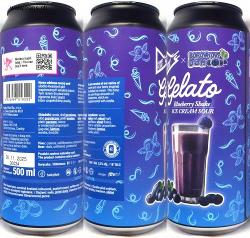 Możesz kupić tutaj:/You can buy it here: W Nowa odsłona naszej serii słodko-kwaśnych piw A new Sweet and A new version of our series of Sweet and sour beers inspired inspirowanych włoskimi lodami. byta by Italian ice cream. This time Tym razem do piwa trafiły które uzupełniliśmy wanilia. we used huge amounts of blueberries, which we supplemented with vanilla. 5 903999 516222 Funky Fluid Sp. z o.o. Zwierzyniecka 8b/1 00-719 Warszawa piwa.cz s.r.o. Kegova 1037/68 700 30 Ostrava, Czechy Nr partii tożsamy z datą min. trwałości. Najlepiej spożyć przed:/Batch number is the same as best before date. Best before date: 06.11.2025 00024 Objętość: Net content: 500 ml ogromne ilości jagód, We used blueberie Supple Składniki: woda, słód jęczmienny, Ingredienteny Ingredients: water, słód pszeniczny, płatki owsiane, płatki pszenne, owoce w zmiennych proporcjach (jagoda), laktoza wanilia, drożdże. barley malt, wheat malt, oat flakes, wheat flakes, barley oat flakes fruit in a (blueben vanilla e vanilla, yeast. terized fruit in variable proportions (blueberry), lactose, Piwo: ciemne, niefiltrowane, pasteryzowate pasteryzowane. Beer: dark, unfiltered, pasteurized. Produkt zawiera naturalny osad. The product contains natural sediment al sediment. OBLIK € Goryczka:/Bitterness: ABV/ABV Alk. 5,5% obj./18° BLG funkyfluid Silné tmavé pivo svrchně kvašené ochucené, pasterizované, nefiltrované./Ch ALU Design: thirst itrované./Chraňte před světlem, mrazem a vysokými teplotami. / Složení: voda, ječné slady, chmelové ve výrobky, kvasnice, obilné wocky, koncentrovaná šťáva/ovocné puree. FUNKY FLUID Х BOROVKOVÝ DOMCODS Gelato Blueberry Shake ICE ICE CREAM SOUR 8