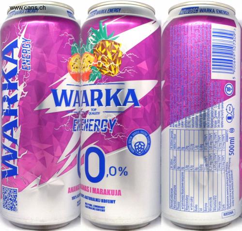 WARKA ENERGY WARKA ENERGY WAARKA TOP QUALITY EMENERGY ,0% ANANASANASI MARAKUJA 100% NAT INATURALNEJ KOFEINY MIX PIWA LEMONIADY 0% NATURALNEJ KOFEINY MROZONE SZYSZKI CHMIELU MROZONE INISATS WARKA ENERGY NOWOŚĆ WARKA ENERGY W 500ml (porcja) 480kJ/115kcal Wartość odżywcza W 100ml 96kJ/23kcal Wartość energetyczna Tłuszcz Og Og w tym kwasy tłuszczowe nasycone Og Og Węglowodany 5,8g 29g w tym cukry 4,5g 22,5g Białko Og 1,2g Sól 0,01g 0,08g Biotyna Witamina B6 Witamina B12 Niacyna Cynk 7,5 µg (15%*) 0,21 mg (15%) 0,375 µg (15%*) 2,4mg (15%*) 0,3 mg (3%*) Opakowanie zawiera jedną porcję produktu *Referencyjna wartość spożycia dla przeciętnej osoby dorosłej (8400kJ/2000kcal) 37,5 µg (75%*) 1,05 mg (75%*) 1,875 µg (75%*) 12 mg (75%*) 1,5 mg (15%*) 40089711 500 ml Bezalkoholowy napój piwny, Połączenia piwa bezalkoholowego Warka Radler 2 napojem energetyzującym o smaku ananasaz marakują z dodatkiem witamin i cynku pasteryzowane alk. 0,0% obj. Wysoka zawartość kofeiny; nie zaleca się stosowania u dzied, kobiet w ciazy i karmiących piersią (32mg/100ml). Nilewskazane dla osób wraźliwych na kofeing. Zawien cukier i substancję słodząca Składniki woda, sokiz zagęszczonych soków jabłkowy (15,3% cytrynowy (3.5%) pomarańczowy (0.9%), 2 marakuli (0,196), ananasowy (0,196), 2 acero (0,1%), słód jęczmienny, cukier, naturalny aromat, regulator kwasowości (kwas cytrynowy naturalna kofeina, naturalny aromat chmielu, ekstrakt z zen-szenia, ekstrakt z guarany stabilizator (guma arabska), witaminy (biotyna, niacyna, witamina B6, witamina B12, naturalny aromat chmielu substancja słodząca (glikozydy stewiołowe ze stewii), cynk, dwutlenek węgla, mrożone szyszki chmielu, ekstrakt z chmielu. Warzone i rozlewane-patrz oznaczenie po dacie przydatności B-Browar Elblag, L-Browar Leżajsk W-Browar Warka, Z-Browar Zywiec Najlepiej spożyć przed data na spodzie Grupa Zywiec S.A, ul. Browarna 88, 34-300 Zywiec. Infolinia: 801-540-450, opłata wg taryfy operatora. ALU recykling 18+ 5 900699 107309"> B2ED24/A