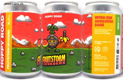 HOPPY ROAD FRUITSTORM INVADERS 33 CL 8% VOL. HO HOPPY ROAD FRUITSTORM INVADERS ILLUSTRATION : QUATRE-VINGTS.DESIGN IMPERIAL SOUR ANANAS GOYAVE BANANE BIÈRE À L'ANANAS [6,8%], À LA GOYAVE [3,4%] ETA LA BANANE [1,2%]. CONTIENT DU GLUTEN (BLÉ, ORGE] BIERE CRÉÉE ET BRASSÉE EN COLLAB AVEC CAMBIER VZ CAMBIER ARTISAN BER HOPPY ROAD 25 AVENUE DE LA MEURTHE 54320 MAXEVILLE-FRANCE BIERE [BIRRA, BEER, CERVEZA, OL] NON FILTRÉE, NON PASTEURISÉE À CONSERVER DEBOUT & AU FRAIS A CONSOMMER DE PRÉFÉRENCE AVANT LE:31-05-2026 3 760271 172475 COLLAB SERIES