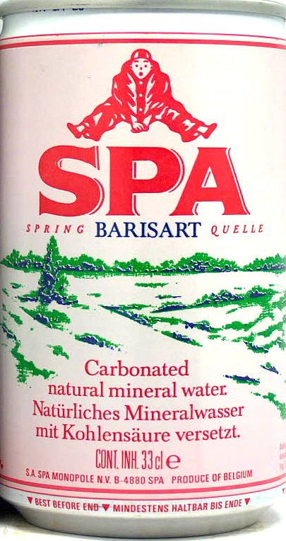 S.A. SPA MONOPOLE N.V. B-4880 SPA PRODUCE OF BELGIUM V BEST BEFORE END V AT LEAST BEFORE END V SPA SPRING BARISART & UELLE Carbonated natural mineral water Natural mineral water carbonated. CONT INH 33cle