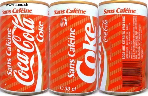 Caffeine Free Caffeine Free e 33 cl Caffeine Free SUBS Coca Cola Coke MAROUESDEPOSEES DEP OSEES BRANDS Caffeine Free Coca Cola LAYING MARKS SODA WITH PLANT EXTRACTS INGREDIENTS: CARBONATED WATER, SUGAR. COLORANT: E 150, ACIDIFIER: E 338, PLANT EXTRACTS. S.R.B.G. 142 BOULEVARD HAUSSMANN 75008 PARIS EMB: 13071 CONDITIONS WITH AUTHORIZATION FROM THE COCA-COLA COMPANY. OWNER OF THE REGISTERED TRADEMARK. Best before end of: SEE BACKGROUND.