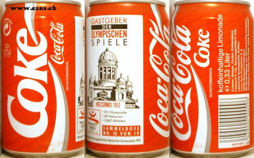 HOST THE OLYMPICS GAMES nimin HELSINKI 1952 • XV. Olympics • 69 nations • 5,867 athletes Rarities Barcelona'92 COLLECTION CAN N R. 10 OF 19 drink of the Olympic Summer Games 1992 Oficels 2KA19A + POINT Coke Coke TRADEMARKS Coke Coke TRADEMARKS caffeinated lemonade e 0.33 liters Ingredients: water, sugar, carbonic acid, Color E 150, acidifier E 338, natural flavorings, caffeine. Coca-Cola production S.A. 59380 Bergues / France Courtesy of The Coca-Cola Company Best before the end: see can bottom 966000,000677