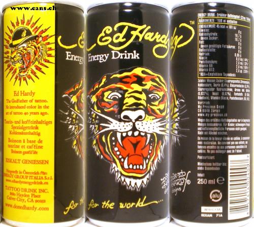 ENERGY DRINK increased caffeine content (82mg 100m) Energ energy drink NUTRITIONAL VALUES 100 mi included TM ENERGY VALUE: 45 kcal = 191 kJ Protein: Carbohydrates: of which sugars: Fat: hereof: saturated fatty acids: Ballasts: Sodium: Niacin: Pantothenic acid: Vitamin 86: Vitamin B12: "RDA = Recommended Daily Dose Ingredients: water, sugar, acidifying agent Zironancare Carbon dioxide, taurine (0.4%), glucuronolactone (0.24 Acidity regulator sodium citrate, aroma inc. Kten (0.032%), inositol (0.02%), dyes E150 Riboflavin), vitamins (niacin, pantothenic acid, BS, 12 Distribution: My Precious GmbH CH-8048 Zurich www.my-preciou8.ch Because of the increased caffeine content only in begrecter Consume quantities. For children, pregnant women and not suitable for people sensitive to caffeine. Do not mix with alcohol. En raison de la teneur étevée en caléine, à cosom with modération. Ne convient pas aux entants, on femmes enceites ou aux personnes sensibles caféine. Ne pas mélanger avec de l'alcol. 10.1 10.7 0.059 8.0 mg (44 2.0 mg (34 2.0 mg (1004 2.0 vg (200% Ed Hardy The Godfather of tattoo. He introduced color in the at of tattoo 40 years ago. Taurine and caffeinated Special drink Carbonated Boisson à base de taurine and caféine Boisson gaztif ife Pasteurized ENJOY ICE COLD Best before: see can bottom Hagenellt in Osterrelch fin NERGY GROUP ITALIA S.r.L. www.cdhardyenergydrink.eu TATTOO DRINK INC. 868o Hayden Place Culver City, CA goa3a contents 250 ml e SARDY alu for from the worldh www.donedhardy.com BE91C13A 00 REXAM 71A