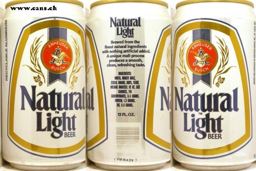 Natural Light Brewed from the finest natural ingredients with nothing artificial added. A unique malt process produces a smooth, clean, refreshing taste. AWHEUSER WMEUSER BUSCH BUSCH OGREDIENTS WATE CEREAL G AVERAGE OPS TEAST Naturalhl Light NNatural Light CARBONTORATES FAL 0.0 GRANS TM 12 FL OZ. TM BEER BEER ( 901 15 A 2Y ) RECYCLABLE AL UMINUM BREWED AND PACKAGED BY ANREUSER-BOSCHL INC SI LOUIS MO.