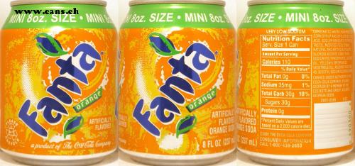 ORANGE SOU ANGE SODA 8 FL OZ (237 m (237 mL) ČALL 1-800-438-2653 MINI 8oz. SIZE MINI 8Oz. SIZE MINI 80z. z. SIZE • MINI 80z. SIZE VERY LOW SODIUM Nutrition Facts ACID, SODIUM BENZOATE ITO PRORI Serv. Size 1 Can CARBONATED WATER, HIGH FRUCIOS CORN SYRUP AND OR SUCROSE OIRO TASTE), MODIFIED FOOD STARCH NATURAL AND ARTIFICIAL FLAVORS SUCROSE ACETATE ISOBUTYRATE SODIUM POLYPHOSPHATES, COCONT OIL, YELLOW 6, BROMINATED % Daily Value VEGETABLE OIL, ASCORBICADD RED Amount Per Serving Calories 110 Total Fat 0g Sodium 35mg 40, DIOCTYL SODIUM SULFOSUCONA 0% CANNED UNDER AUTHORITY OF THE COCA-COLA COMPANY, ATLANTA 1% GEORGIA BY A MEMBER OF THE CCE BOTTLING GROUP, ATLANTA Total Carb 30g 10% GEORGIA 30339. 802 Sugars 30g Protein 0g 2001-2389 orange orange ARTIFICIALLY FLAVORED FOALLY MORED ARTIFICIALIFICIALLY FLAVORED FLAVORE "Percent Daily Values are based on a 2,000 calorie diet. s ©2001 THE COCA-COLA COMPANY a product of The Coca Cola Company CONSUMER INFORMATION 8 EL OZ (231 7 ML) CALL 1-800-438-2653 000067 0