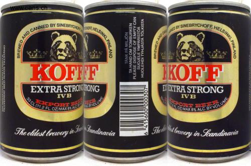 EXPORT BEE CL (11.2 FL. OZ) MAX 8% ALC.BY SEER CHOFF, HELSINKI, A PORT BE ER CANNED BY SINEBRYCHOFF, HELSINKI, F The oldest Brewery in S Seandinavia SINEBRYCHOFF, HELSINKI, CANNE 7321 KOFFF IKOFF EXTRA STRONG IRONG EX EXTRA STRONG IVB IVB OL PORT 12 FL.OZ) MAX 8 %% AC BY VOLUME The oldest Brewery in Su Scandinavia The dle t Brewery in Seandinavia PUM PREPARATIONS ARE STARTED TILLVERKAT MED ALK OS TILLSTAND BREWED FINLAND TÄNK PÅ MILJỐN PLEASE DISPOSE OF EMPTY CAN PROTECT THE ENVIRONMENT HAND OM TOMBURKEN TAKE CARE OF AN EMPTY INTERPRETER BREWED 33 CLUI FINLAND